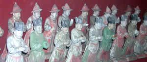 服饰是社会物质生产和思想文化的综合反映。这组自宋代至明代的陶俑各具时代特点为我们研究当时的社会生活及习俗提博物馆、纪念馆和展览馆供了宝贵资料。